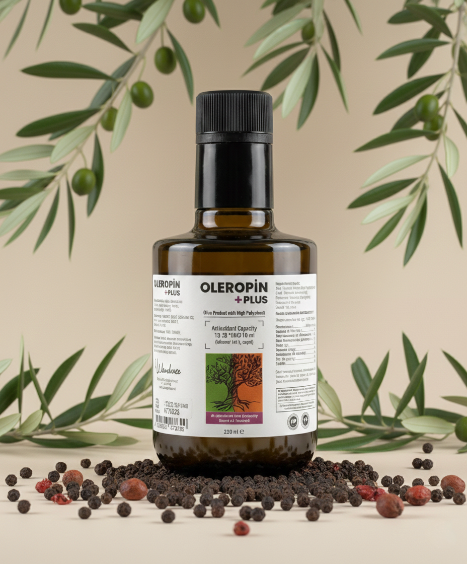 Oleropin Plus, yalnızca tek bir bileşeni değil zeytin ağacının bütünsel fenolik yapısını esas alır. Zeytin yaprağı ekstresi ile soğuk sıkım ekstra sızma zeytinyağının birlikte kullanımı, zeytin ağacında doğal olarak bulunan fenolik dengeyi korumayı hedefler.